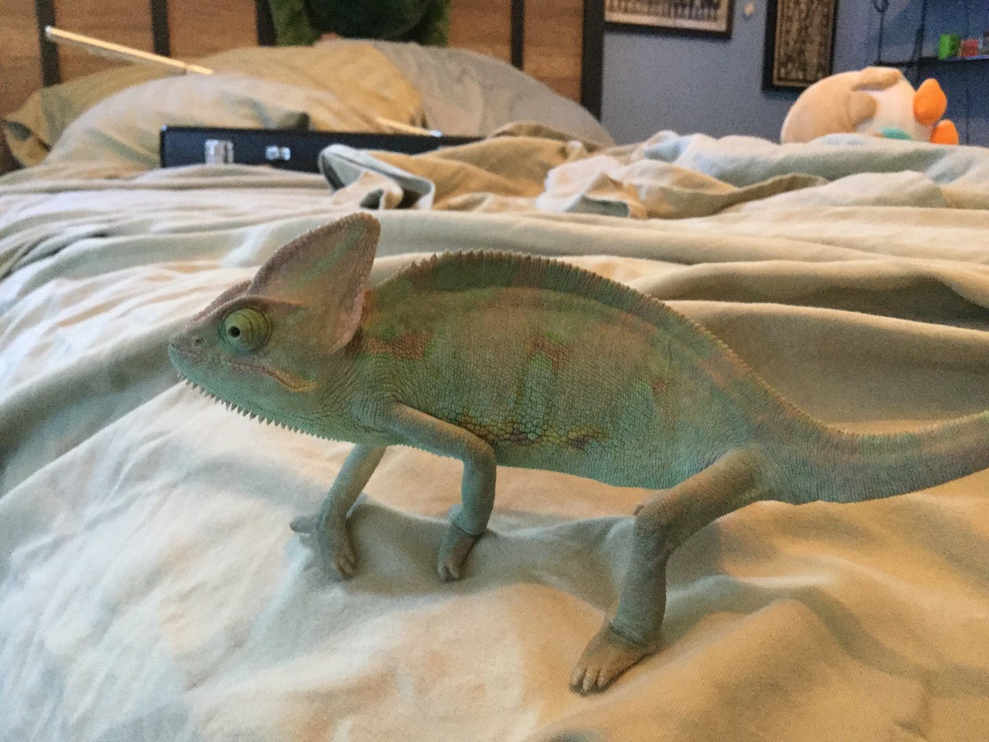 My Veiled Chameleon that I’ve had for about a month and a half has areas less saturated than others does this mean anything?
