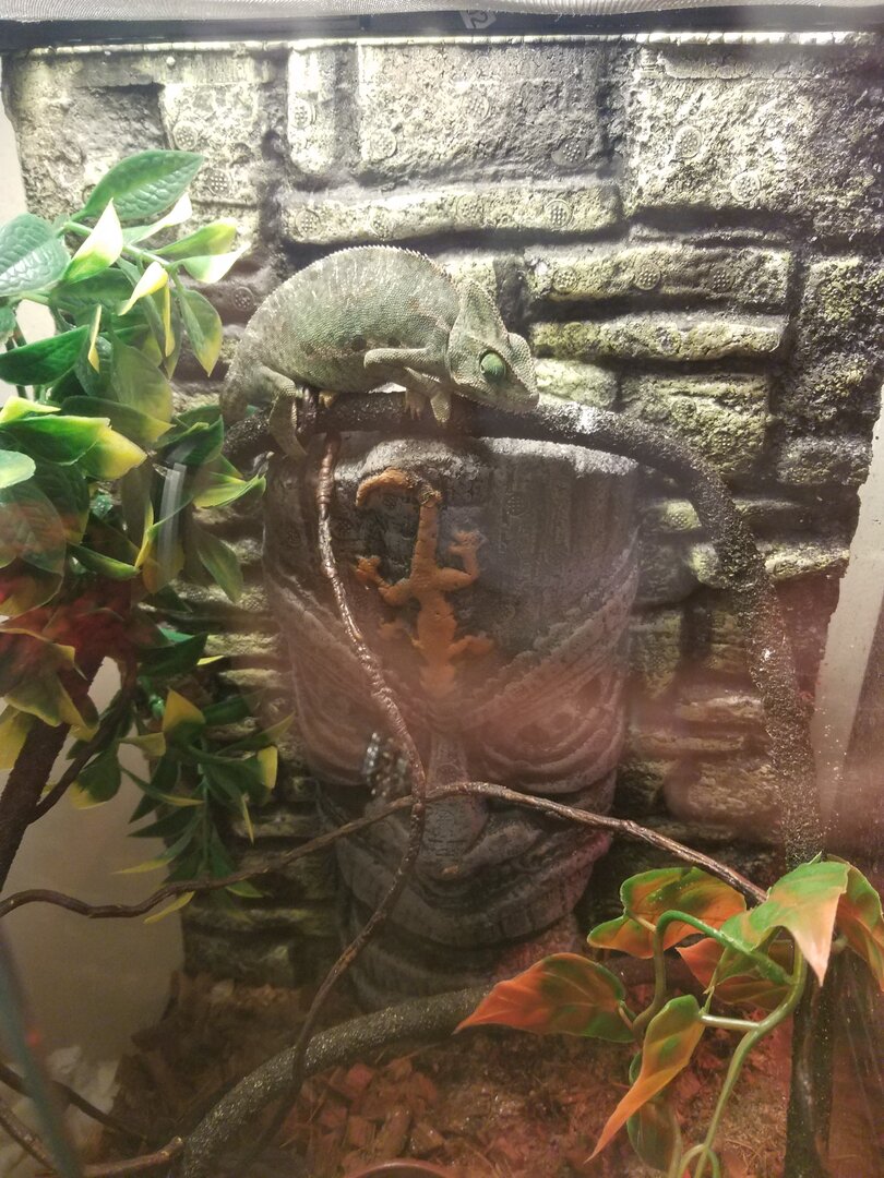I am moving my chameleon to a bigger mesh cage tonight. She is eating and pooping isnt digging. Might have been too hot so I turned off heat bulb for awhile today with just uvb on.