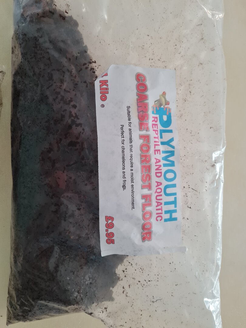 Hi, I'm going to look for a large pot and plant to create a better lay bin for her. Thank you so much. The other half of the floor is course forest floor (like large chippings). I've attached a pic of the label