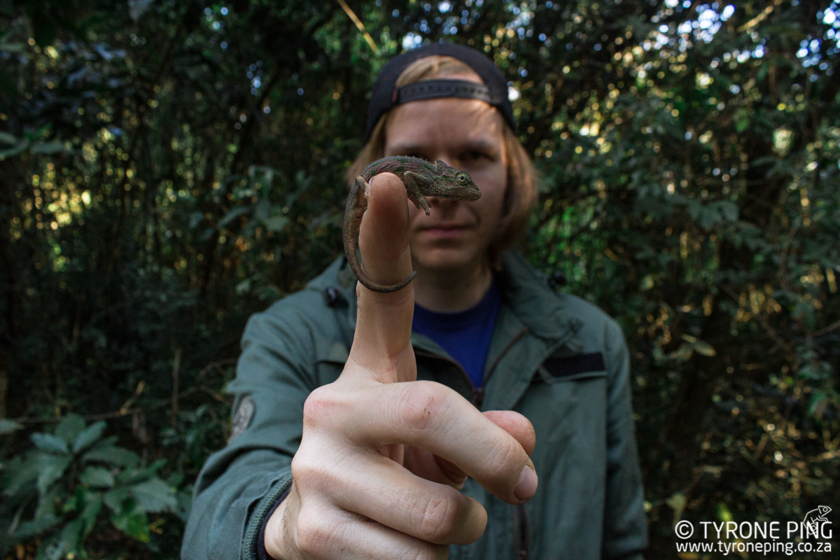 Junveile Bradypodion caeruleogula - uMlalazi Dwarf Chameleon.