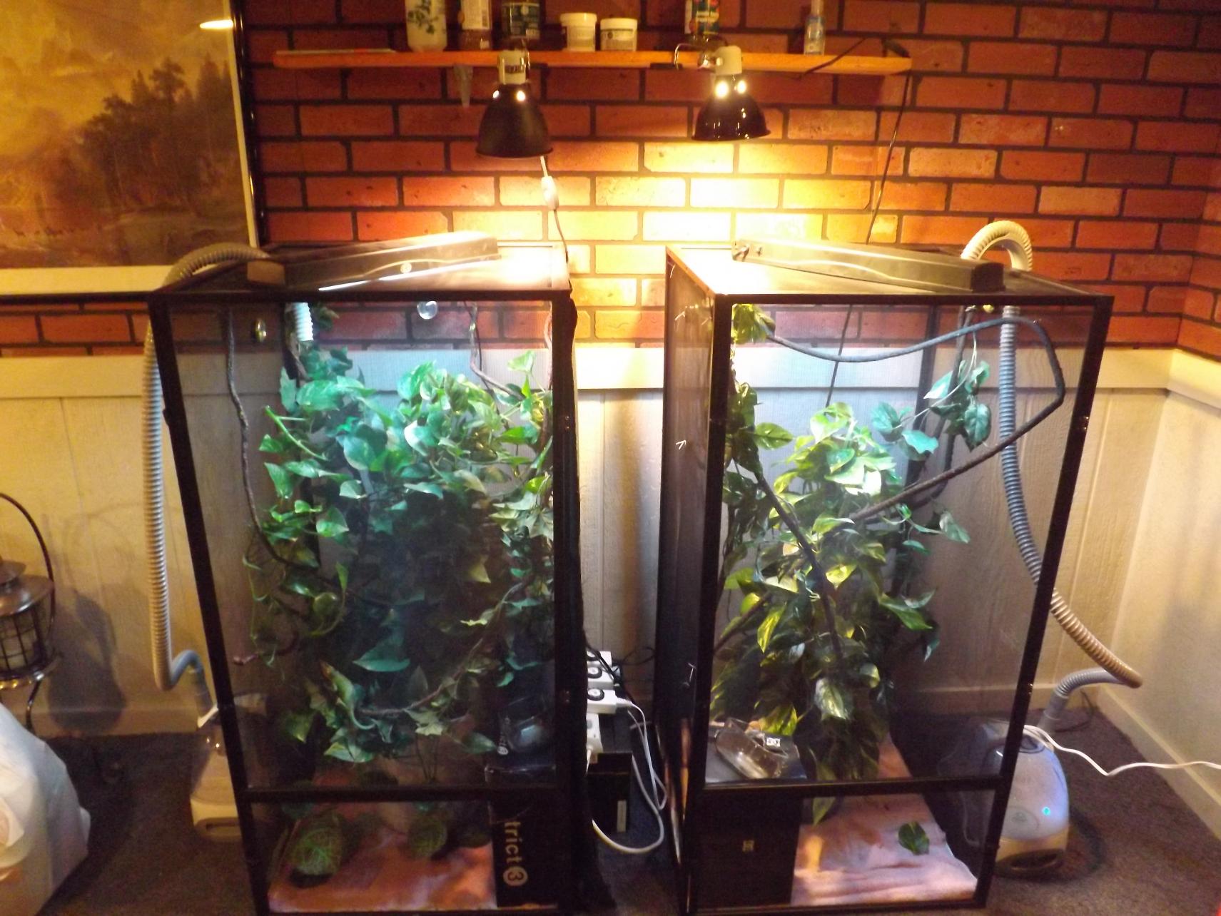 Xander's is the cage on the left. I have a thick black cloth hanging that covers the whole side of his cage so him and Zozo (my veiled) can't see each other.