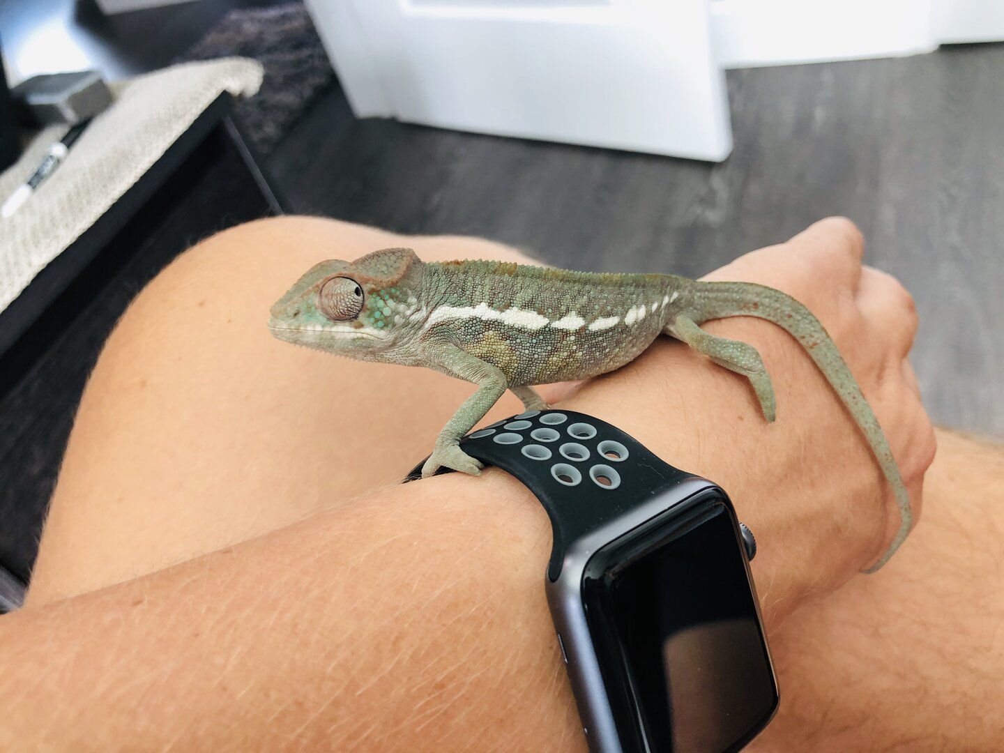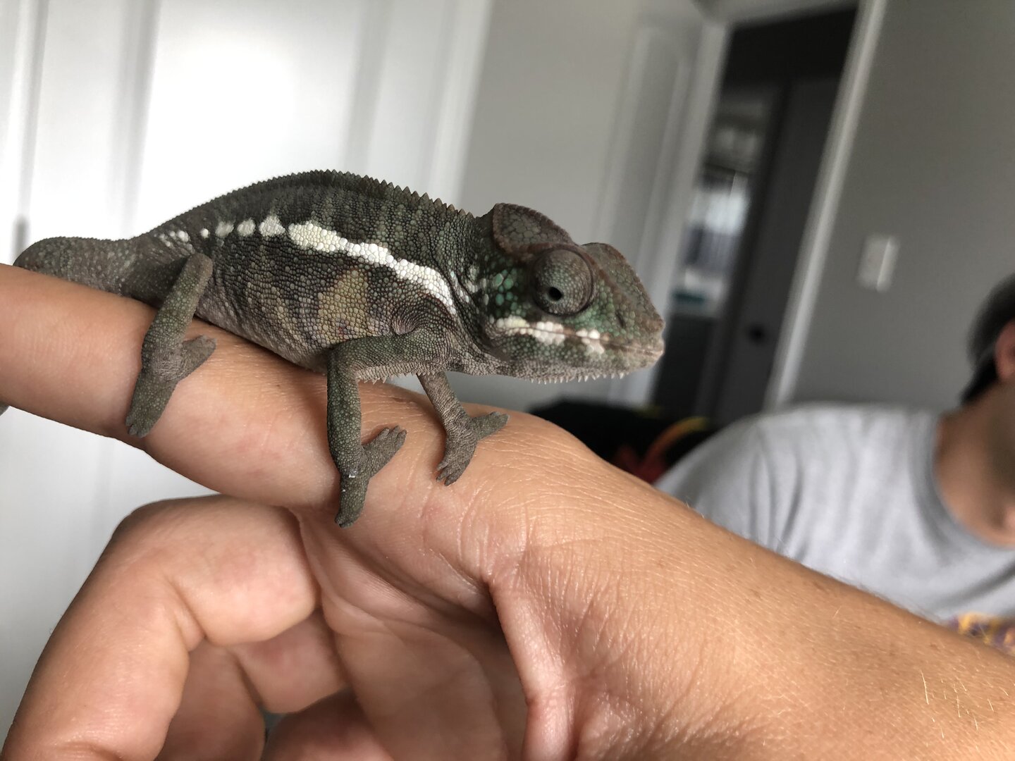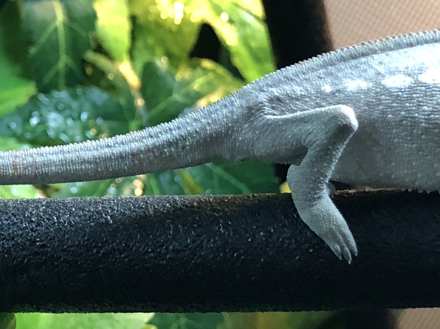 I am patiently waiting to be able to 100% confirm the sex of my little panther chameleon. So I used to think I could see a bulge, however I am now not seeing it. But colors are now starting to come in and I am wondering if a female would show these types of colors? Below are the latest photos I have of the base of the tail and of my little guy (or girl) showing colors. I see greens, yellows and oranges/red. This is a yellow body blue bar ambilobe panther chameleon, a little over 4 months old.