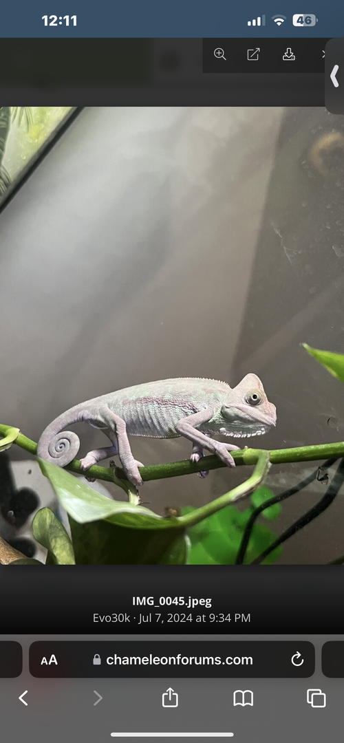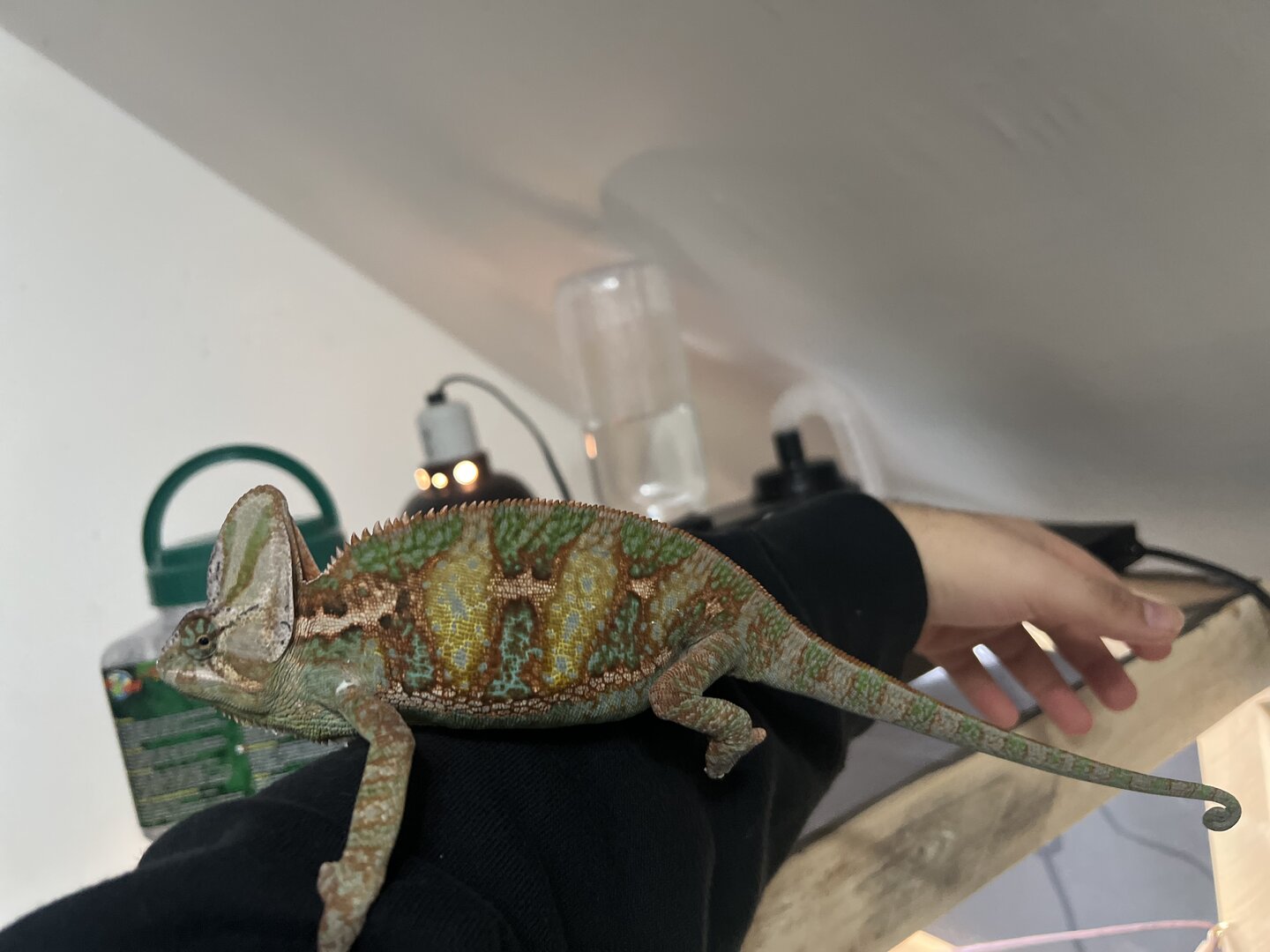 MissSkittles Chameleon Enthusiast Jan 10, 2025 #2 I’m not the greatest at determining age of veileds, but my guess is he was about 2-3 months this old in the baby pic. So that would put him at around 9-10 months old now. He’s a cutie at any age.