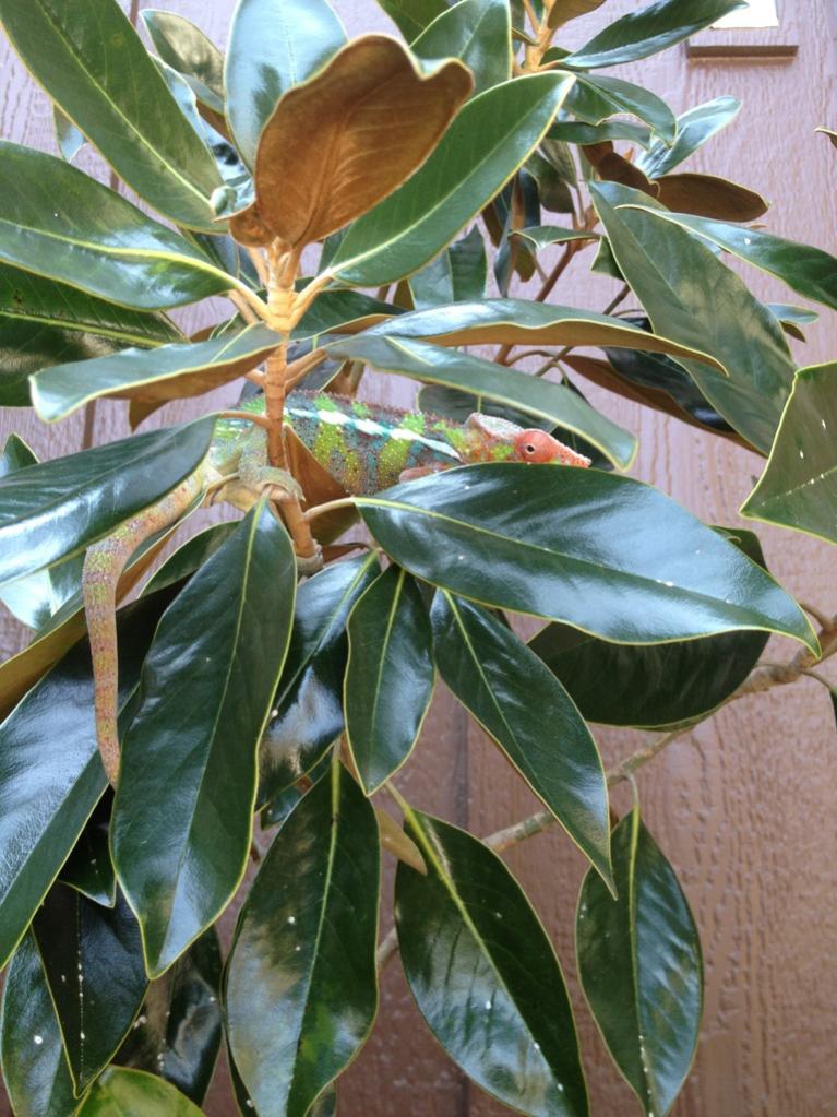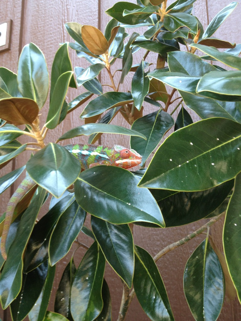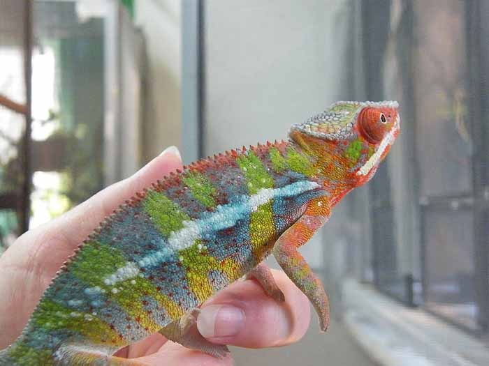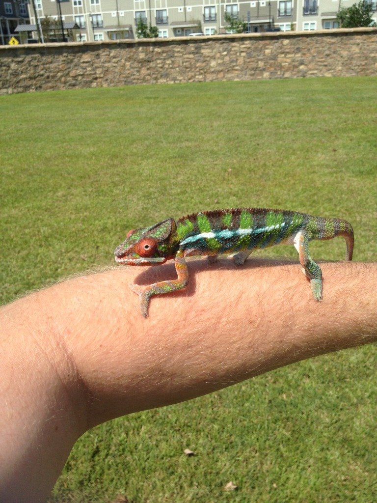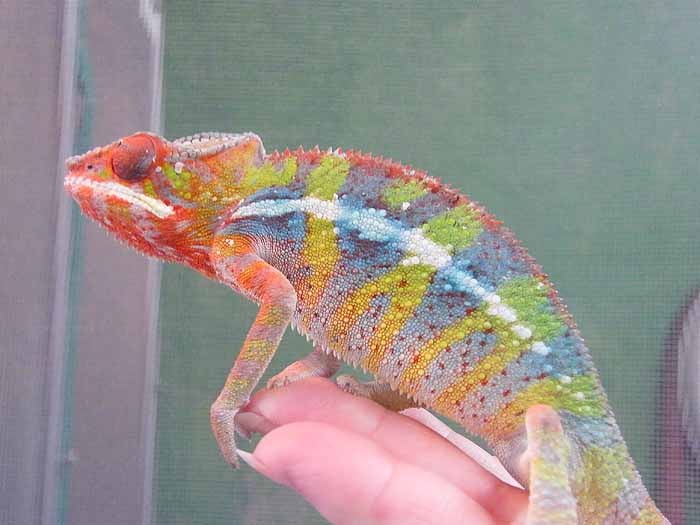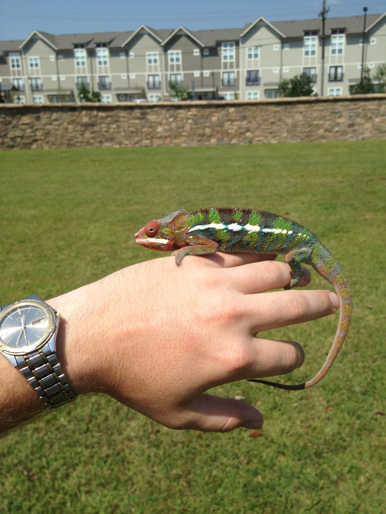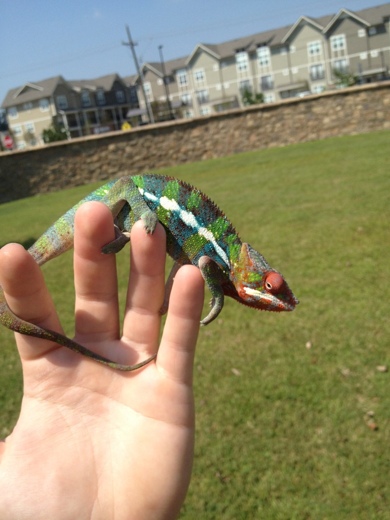 For the longest time I've been wanting one of these beautiful "skittle" colored chameleons. Especially hearing how much better their temperament is compared to my previous Veiled. Well as luck would have it, Chameleons Northwest had a beautiful blue bar named Torpedo that they literally put up for sale minutes before I started looking. I swear it's as if it was mean't to be. Well we've changed his name to Zeus because he's defiantly king of the house, and the most magnificent reptile we've ever had. I think he may be a red body blue bar, as at 6 months he has a ton of red pigment coming through. Either way he's awesome and absolutely perfect. He's even helping me down all the butter worms I need to get rid of before they go bad. It's easier for me to add pics from tapatalk so I'll do that here in a second.